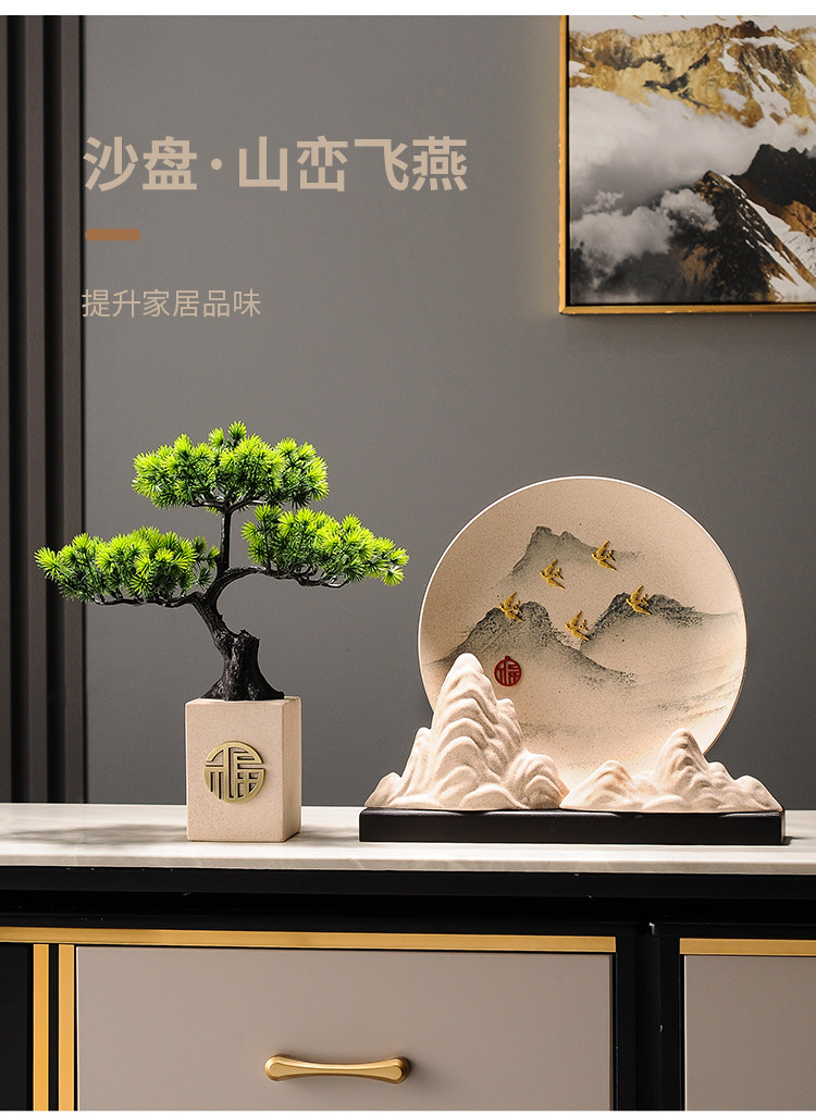 新中式摆件假山摆盘办公书房装饰品老板领导办公桌创意摆设工艺品