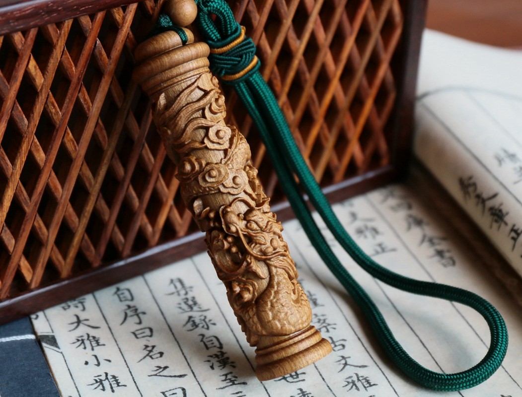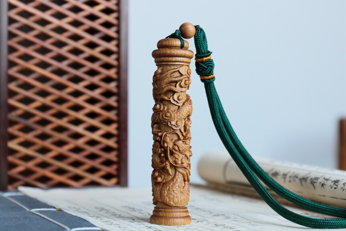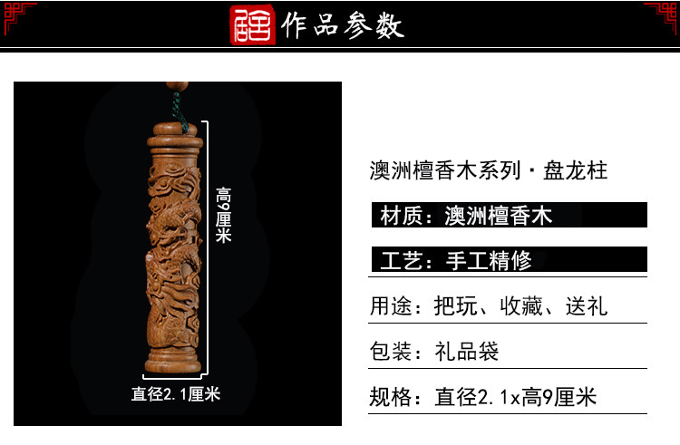 澳洲檀香木雕刻实木盘玩檀木把玩挂件木质文玩摆件盘龙柱手把件