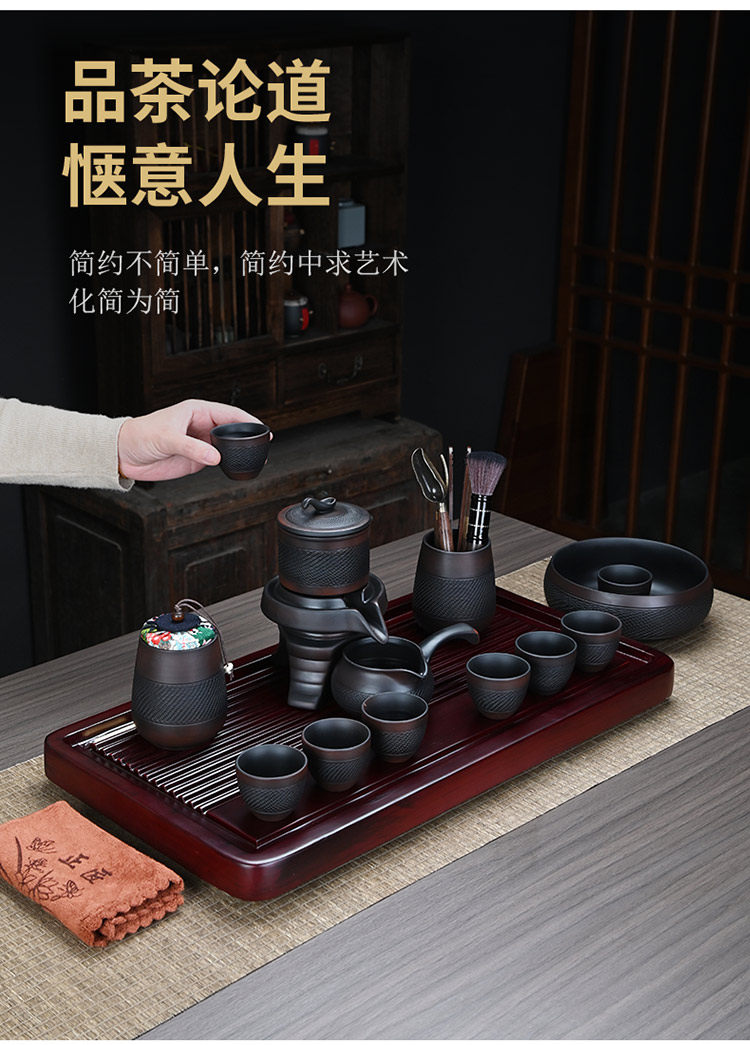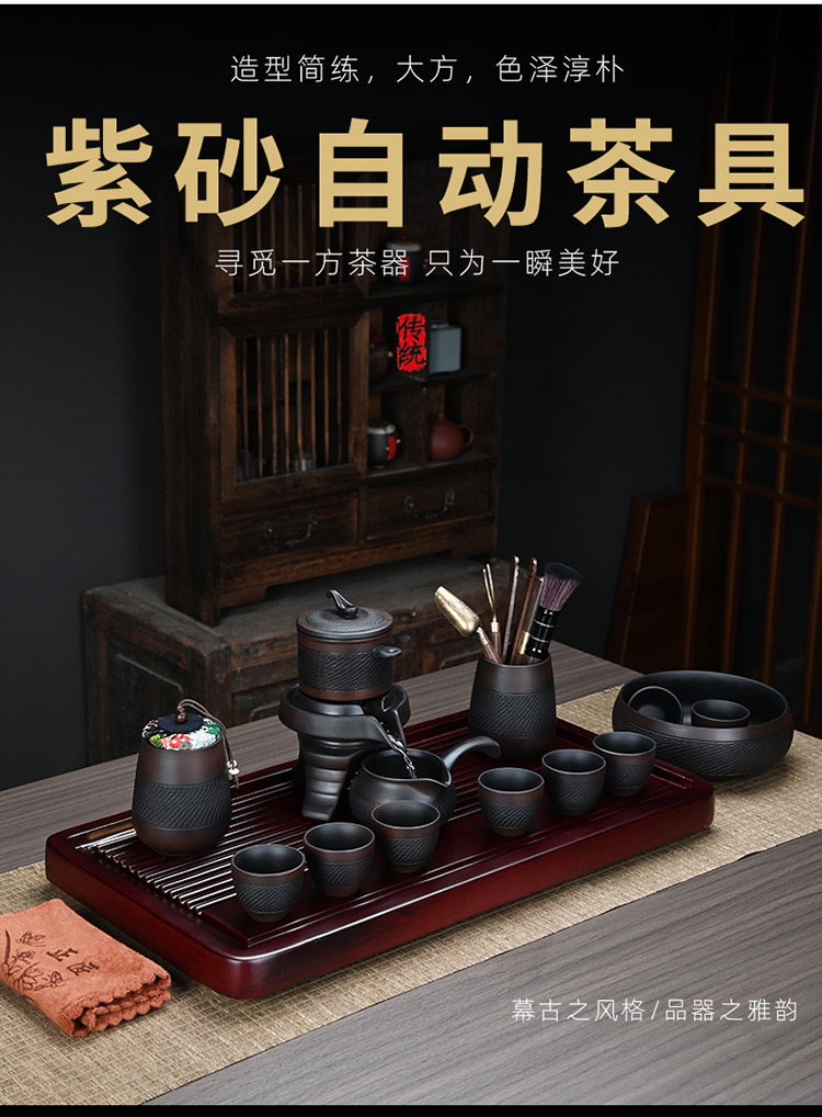 功夫茶具套装新款家用石磨旋转出水高端紫砂壶自动懒人泡茶泡茶壶