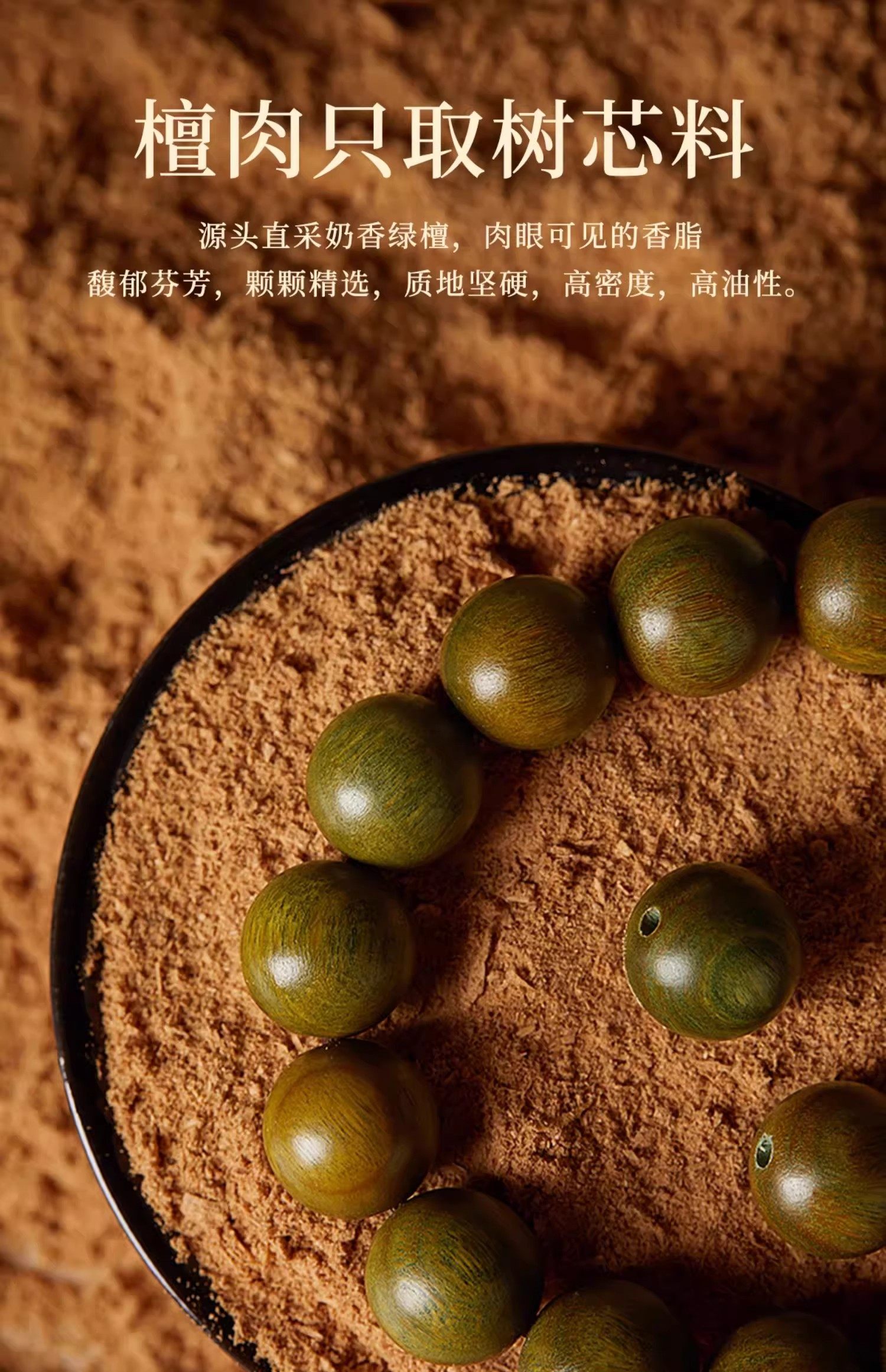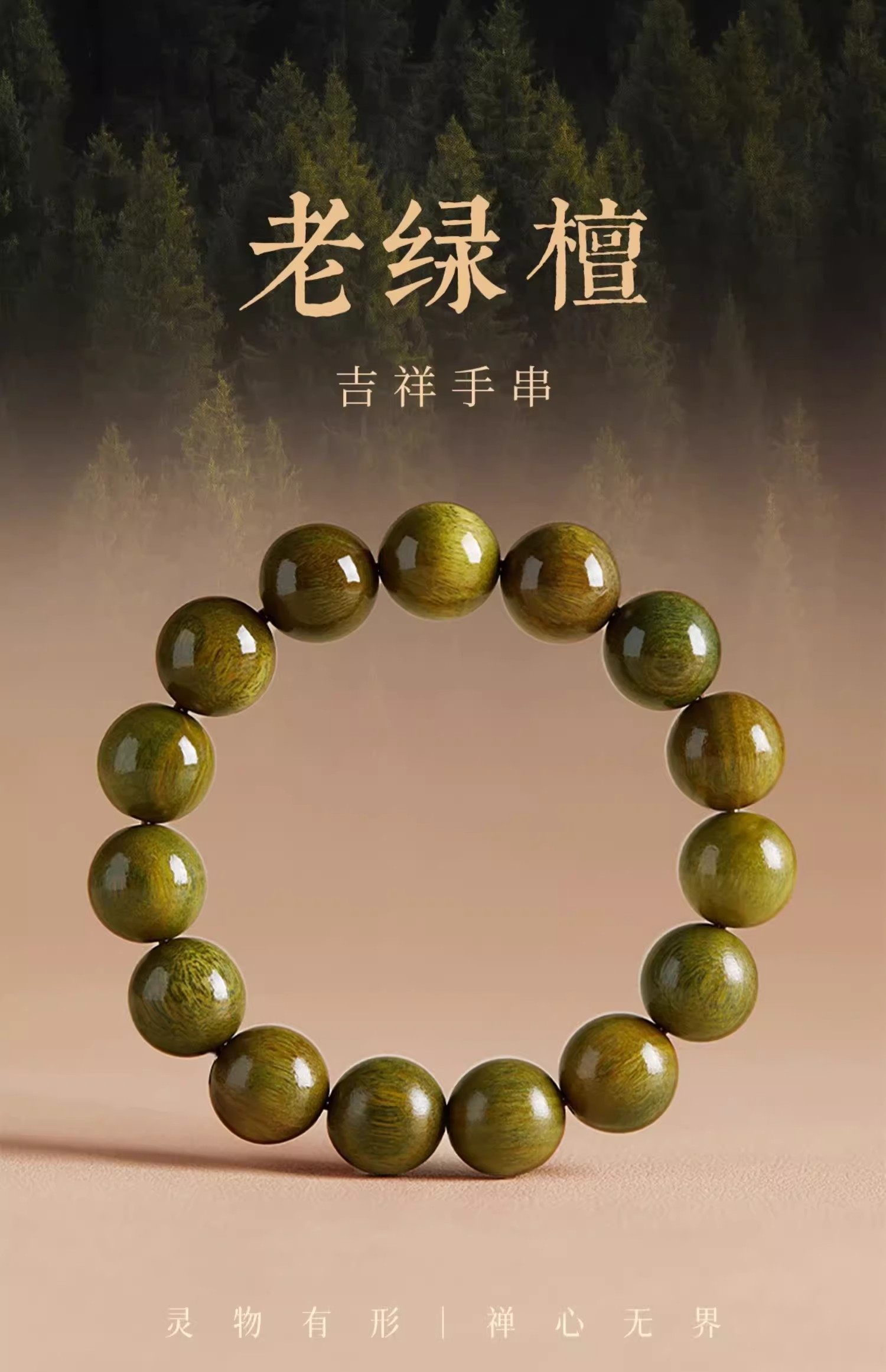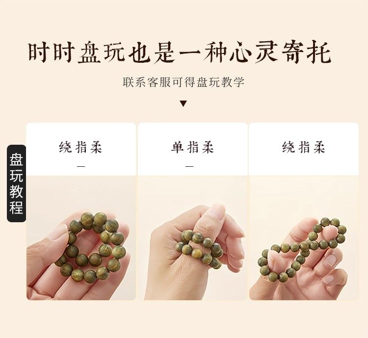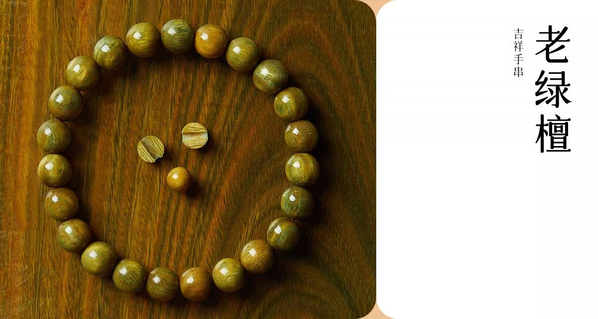 普陀山老料天然绿檀木本命年檀香木男女士木质佛珠念珠文玩手串