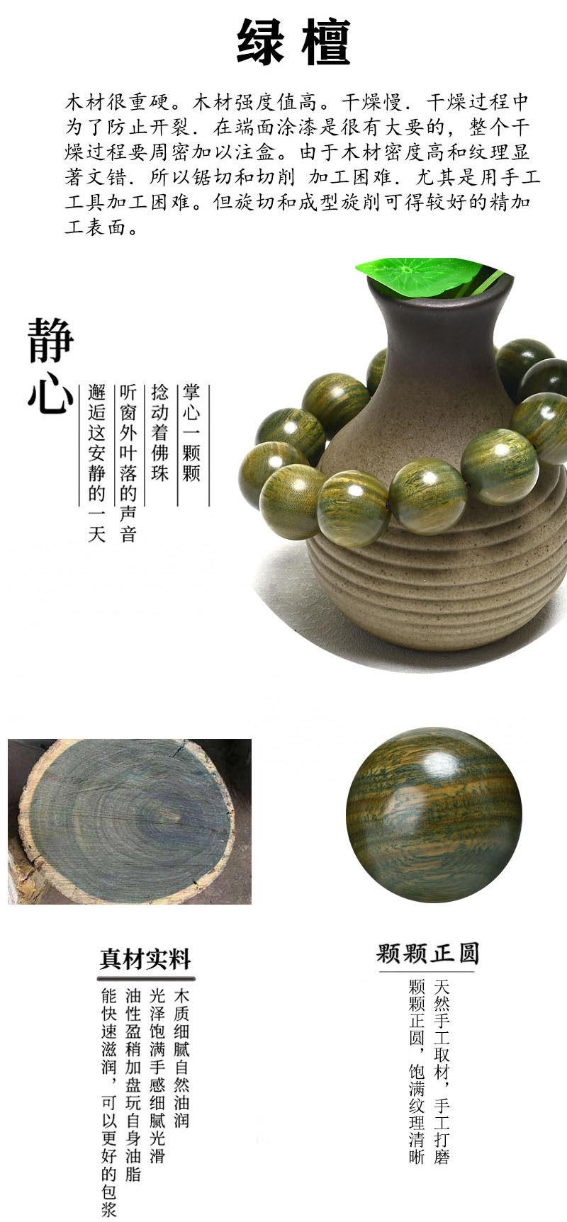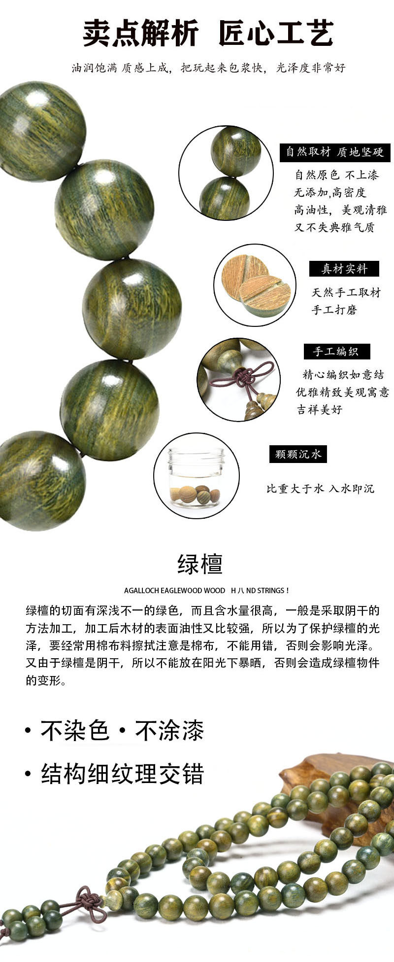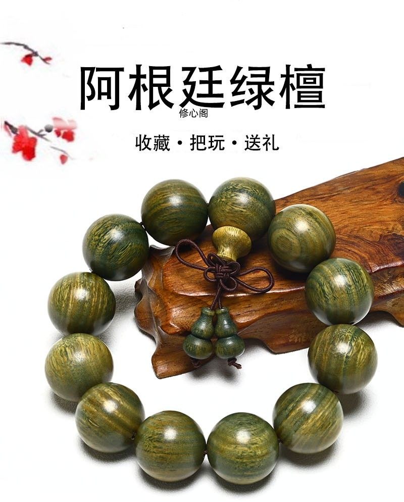 修心阿根廷精品绿檀木佛珠手串天然玉檀木香手链男女情侣饰品