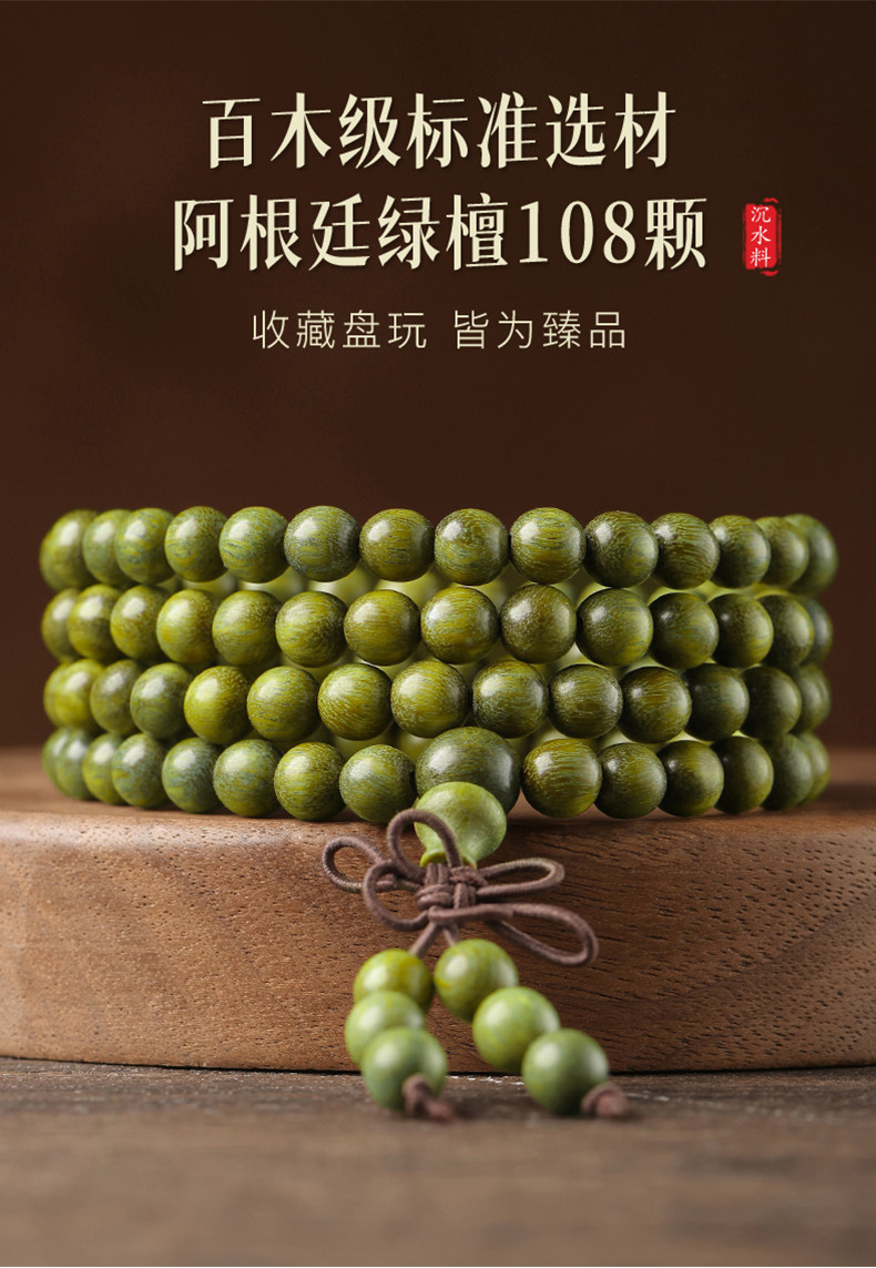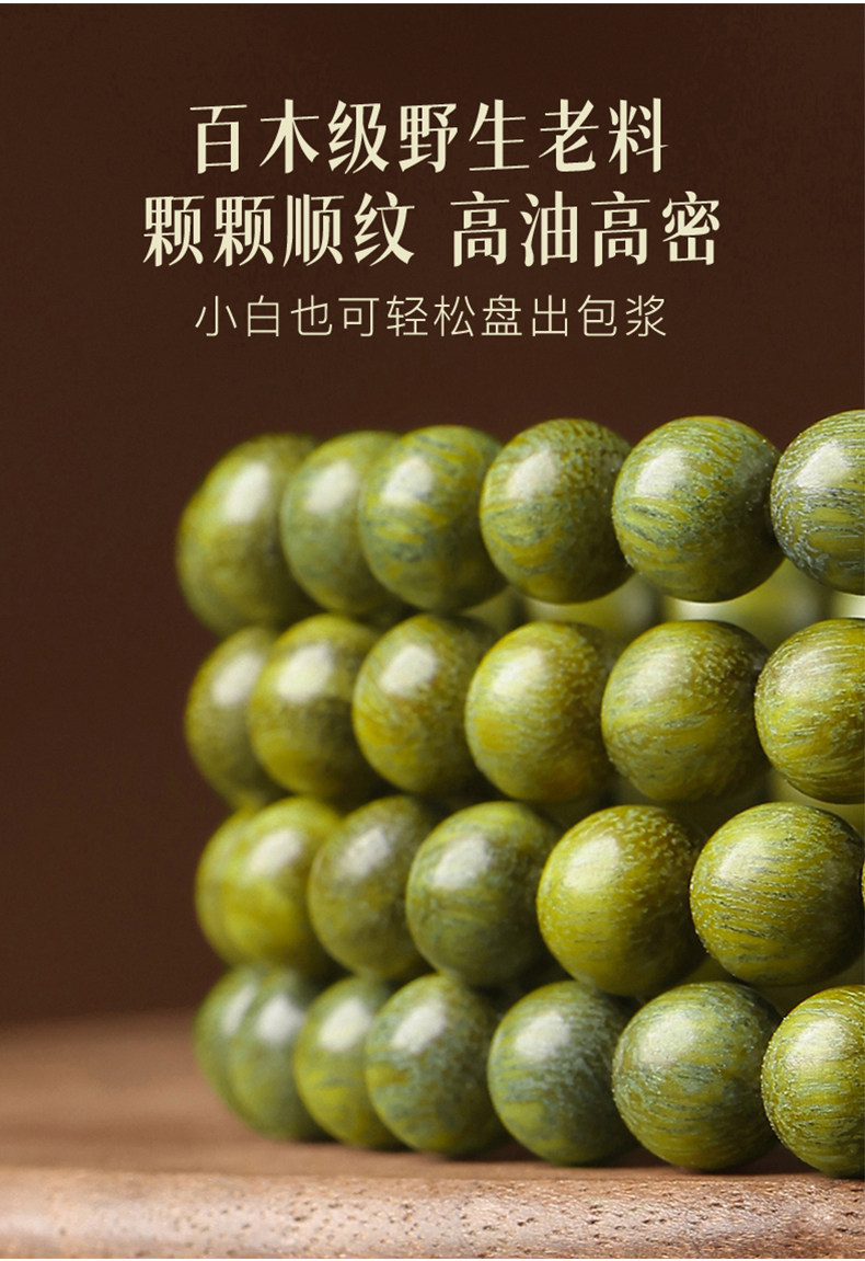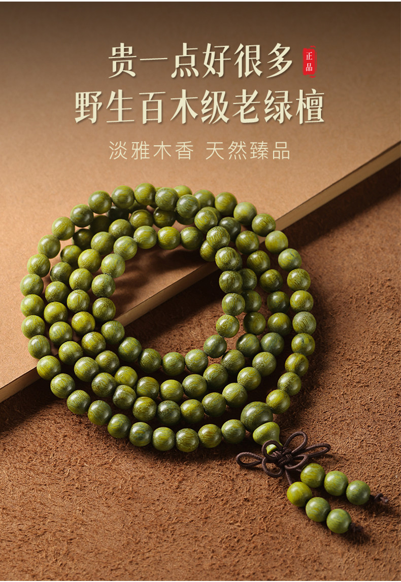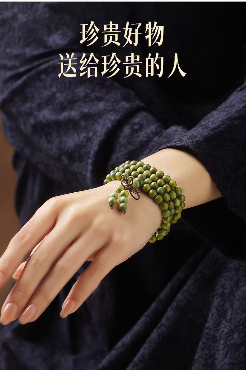 天然绿檀木手串男女108颗手链木质盘玩文玩檀香木饰品