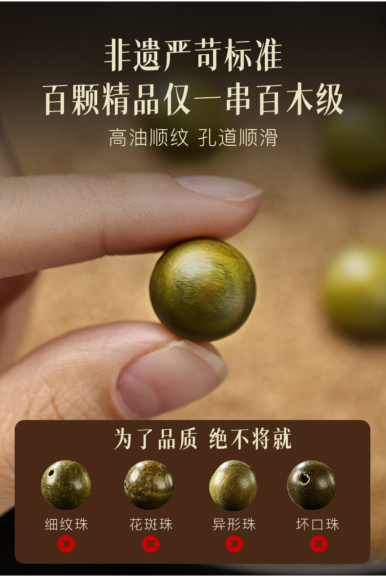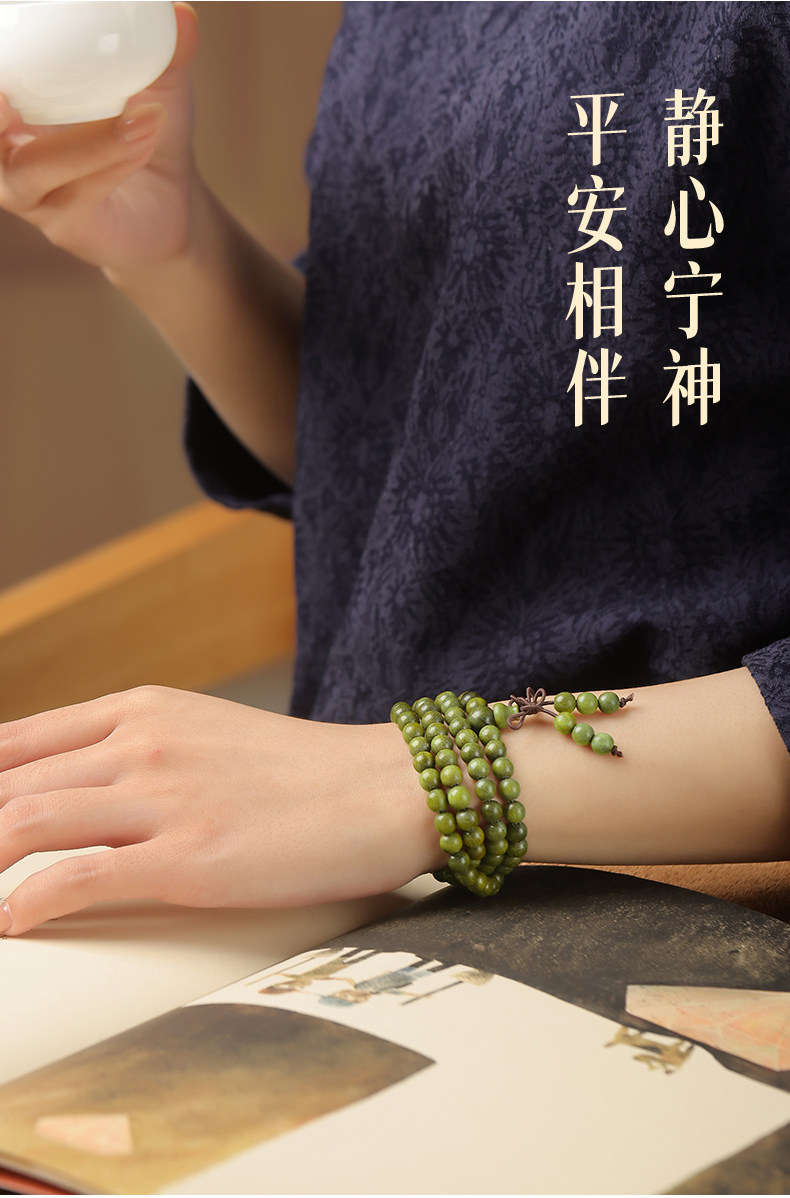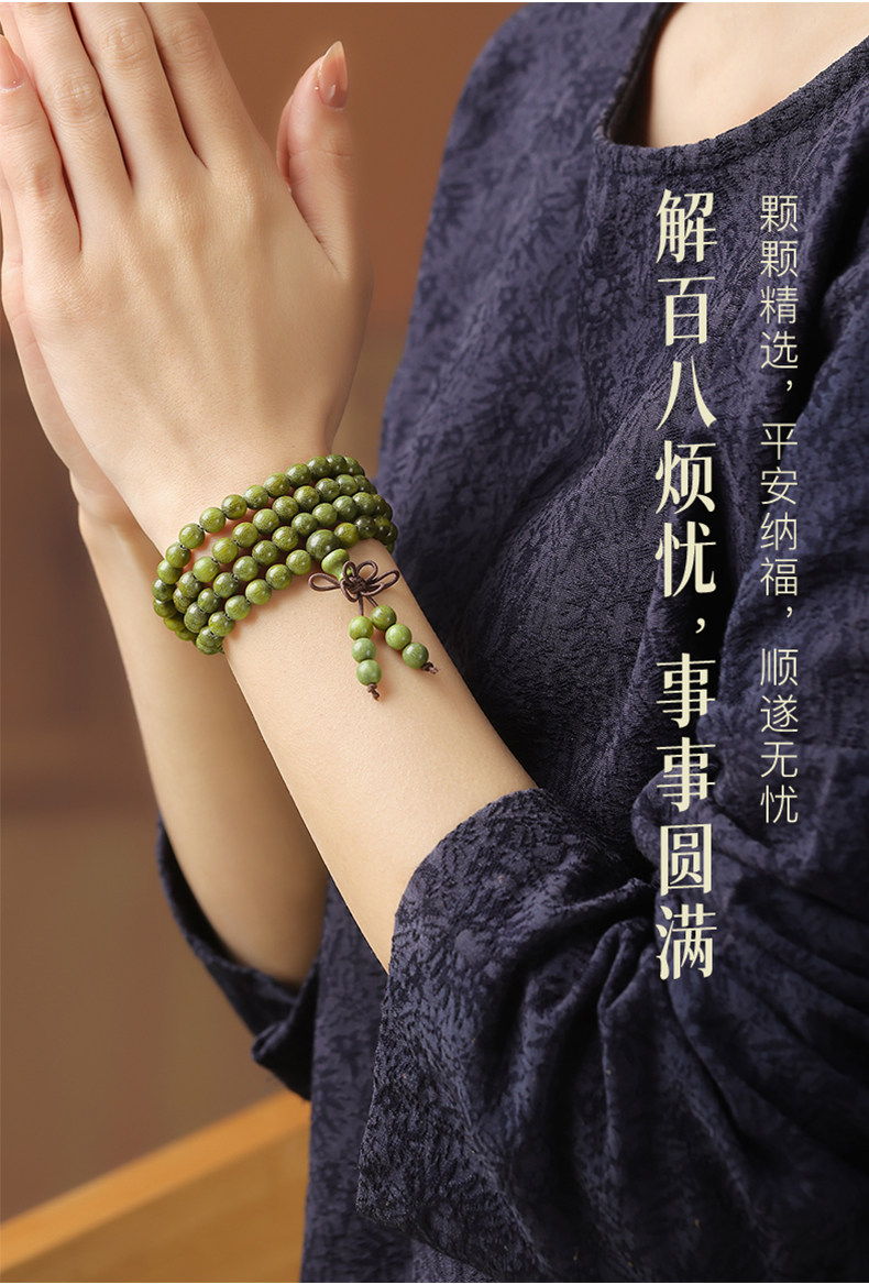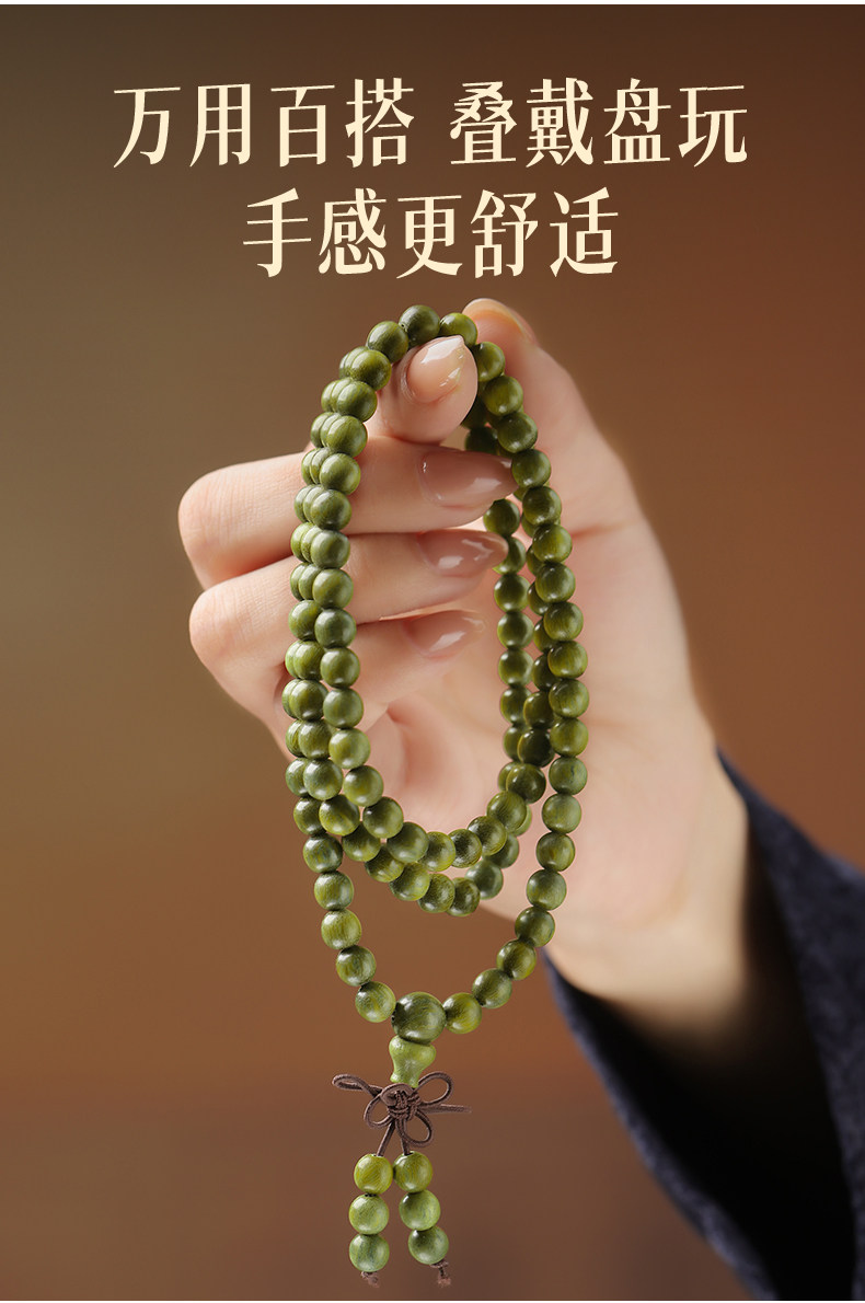 天然绿檀木手串男女108颗手链木质盘玩文玩檀香木饰品
