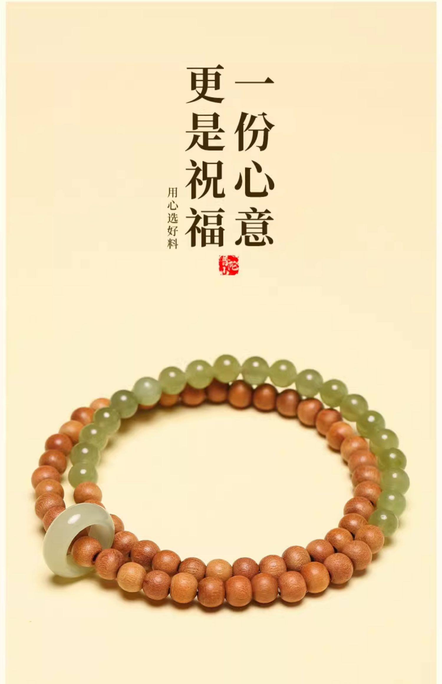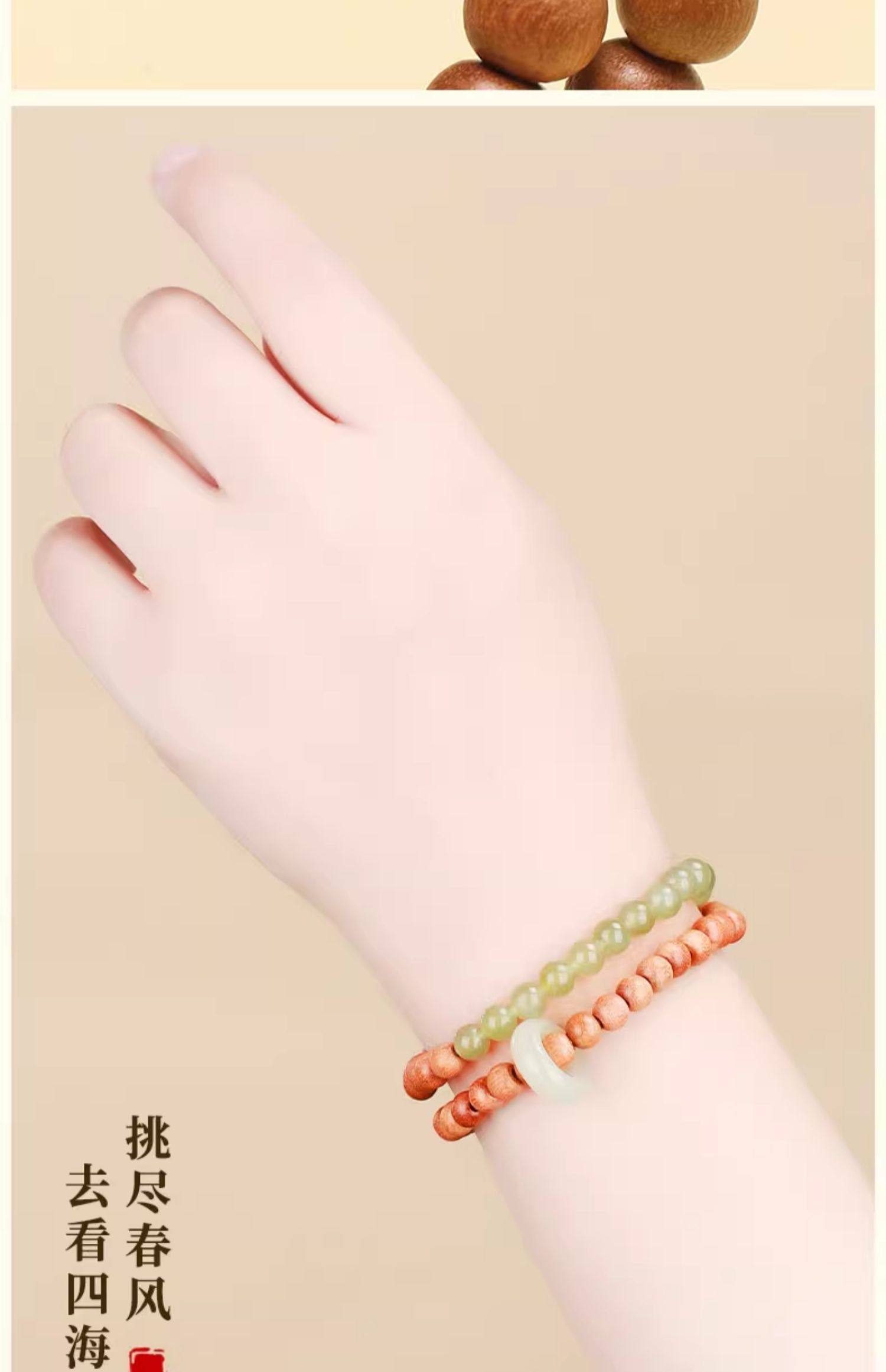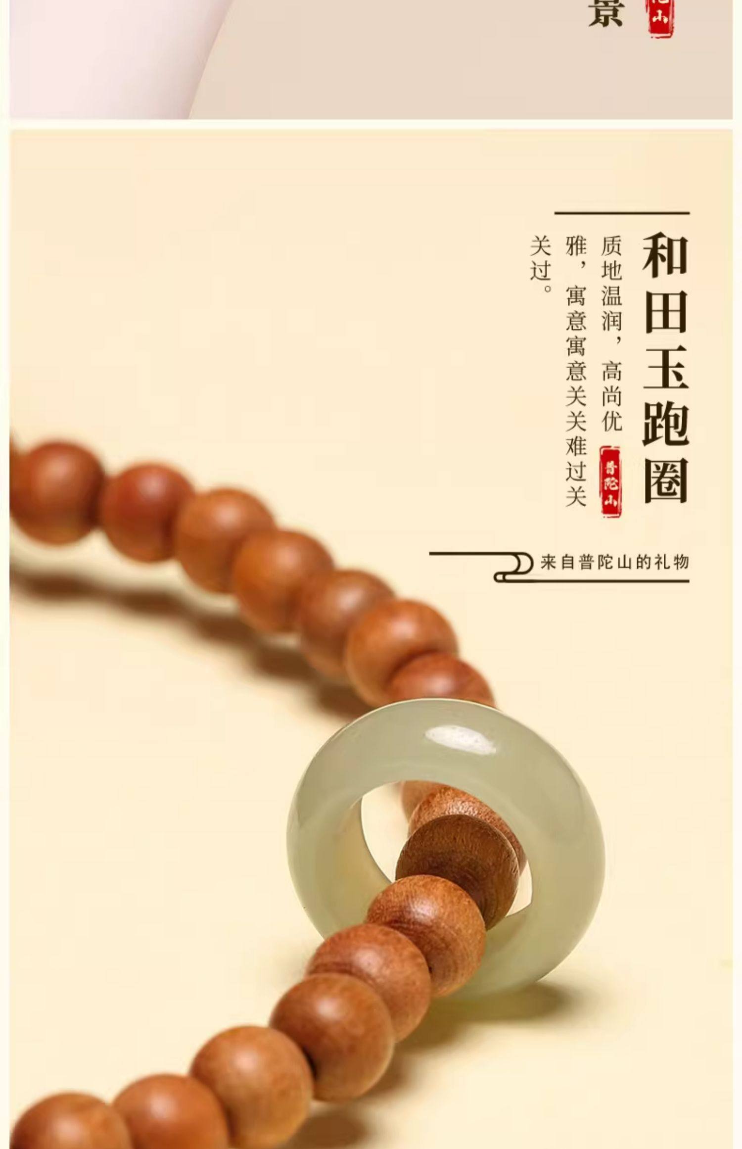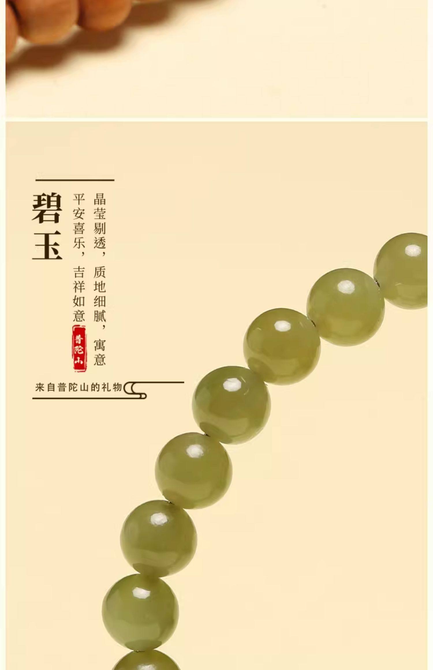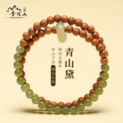 普陀山青山黛檀香木手串男女生手持跑环和田玉碧玉双圈手链手饰品
