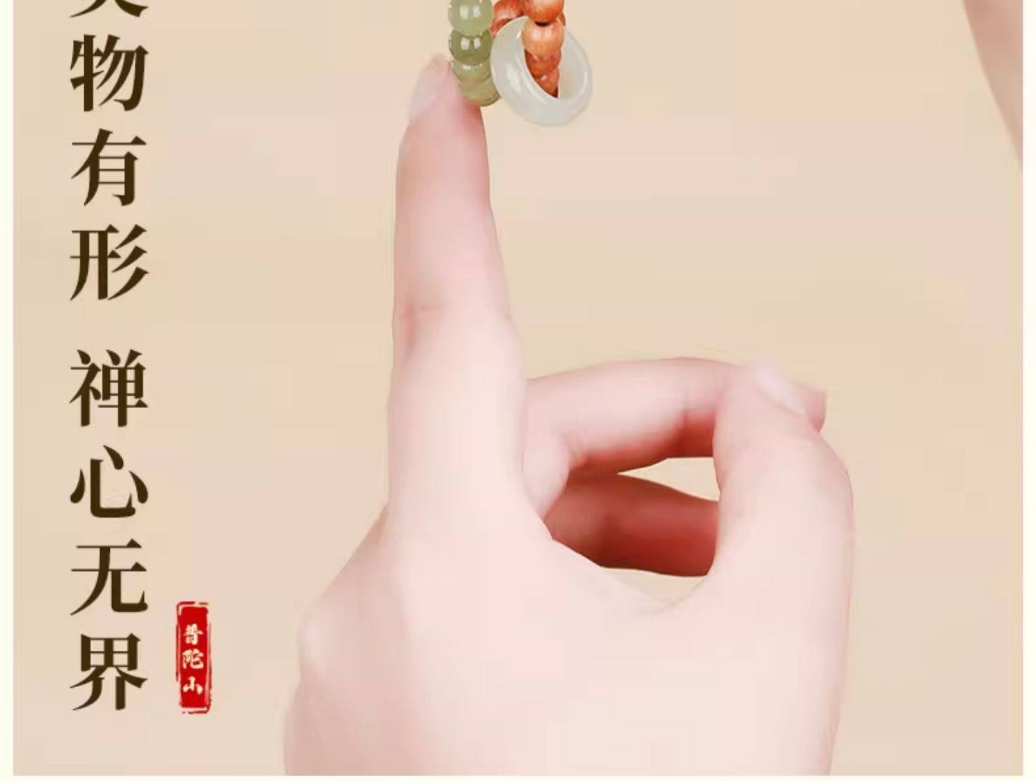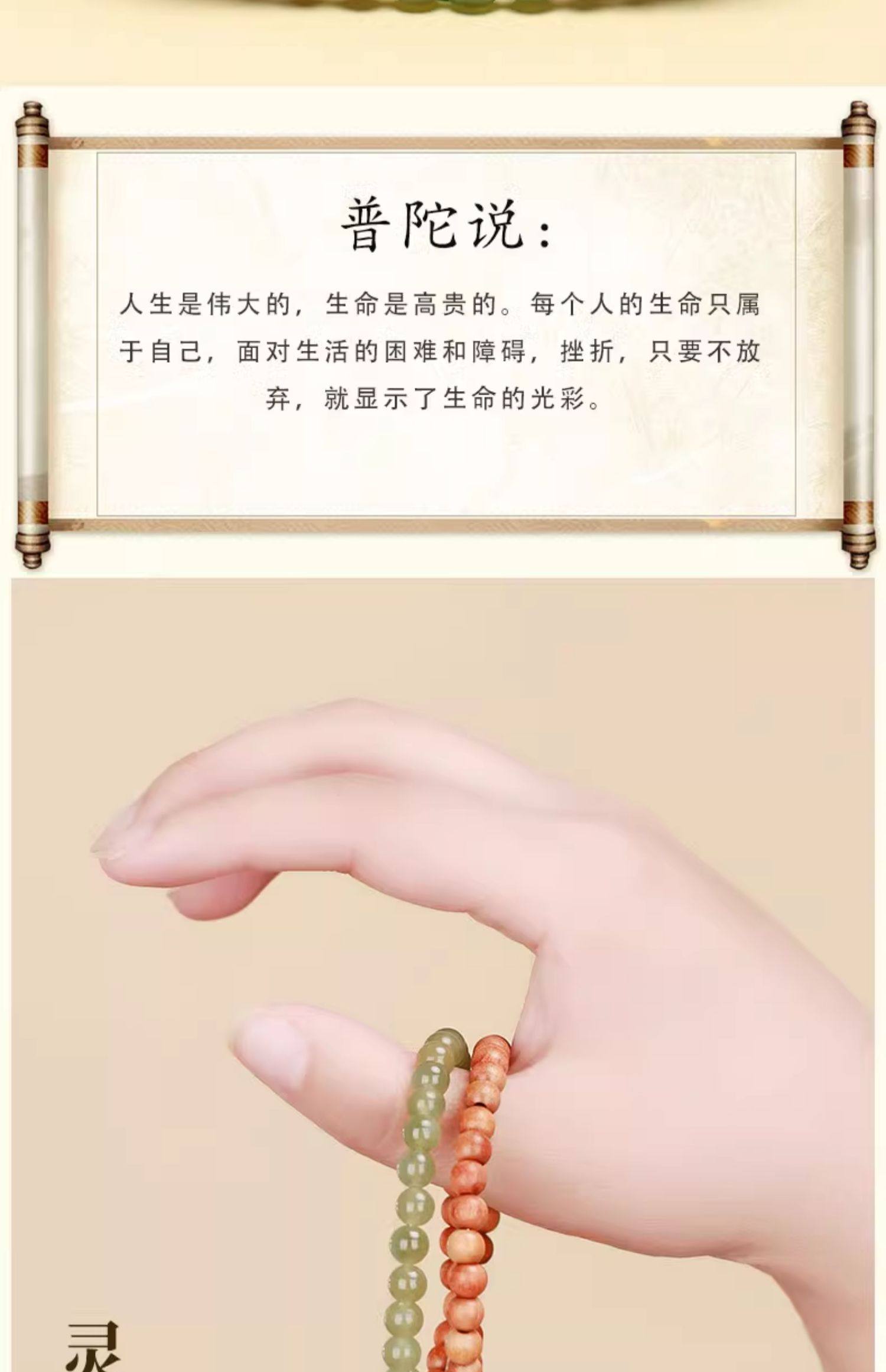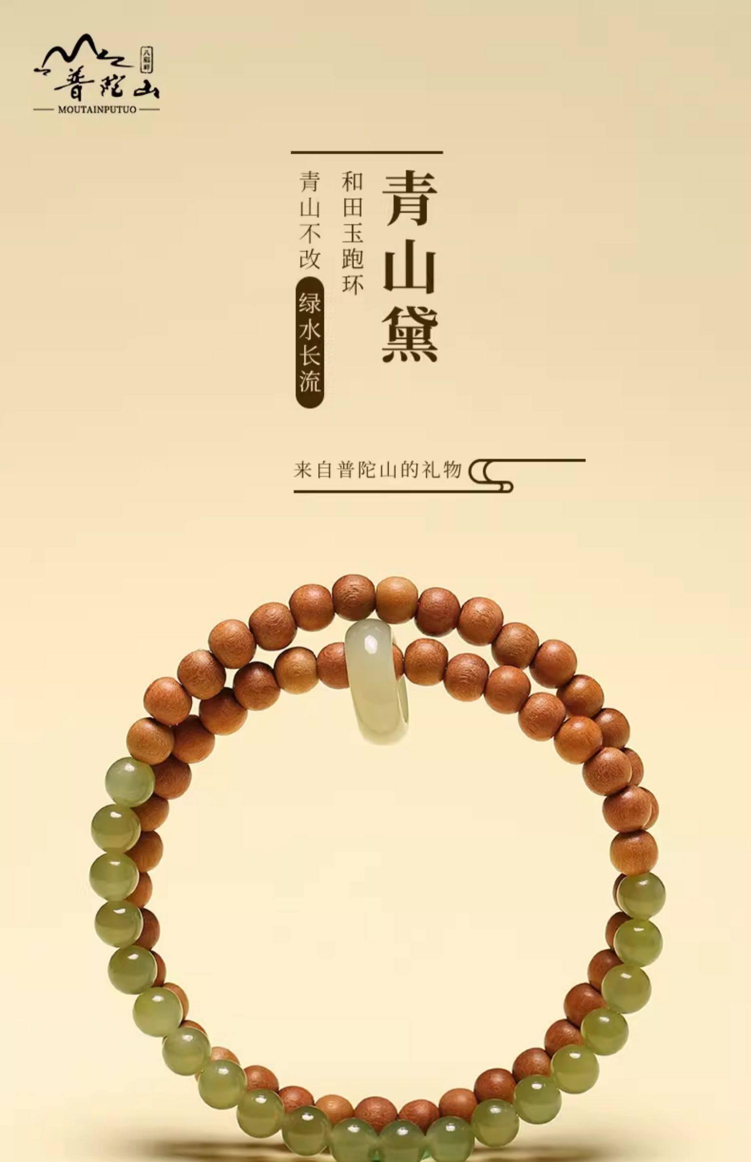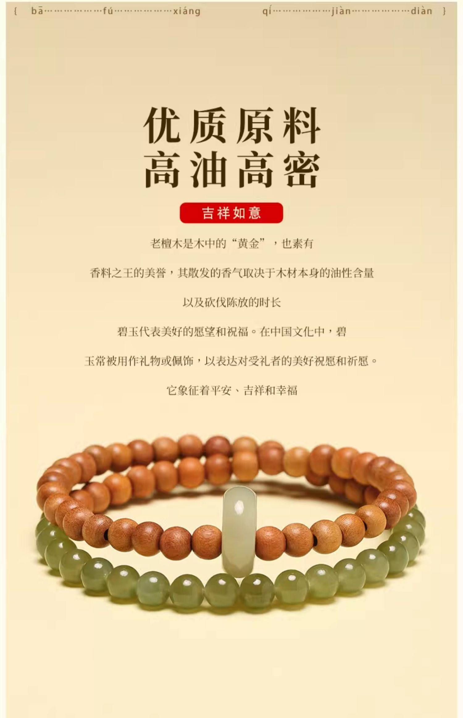 普陀山青山黛檀香木手串男女生手持跑环和田玉碧玉双圈手链手饰品