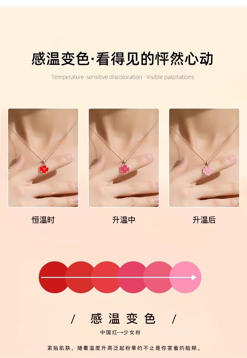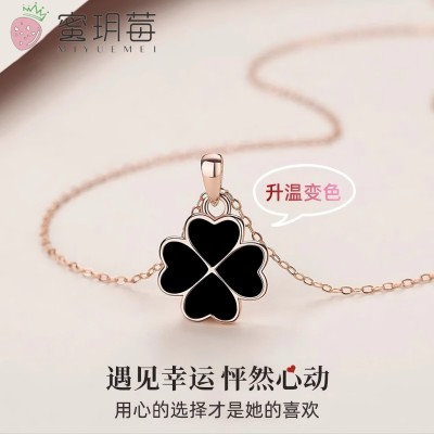 纯银感温变色四叶草项链