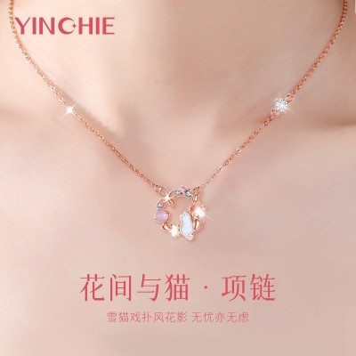 首页 > 饰品专区 > 项链 > 花间与猫纯银项链女款镶施华洛锆毛衣颈链吊坠