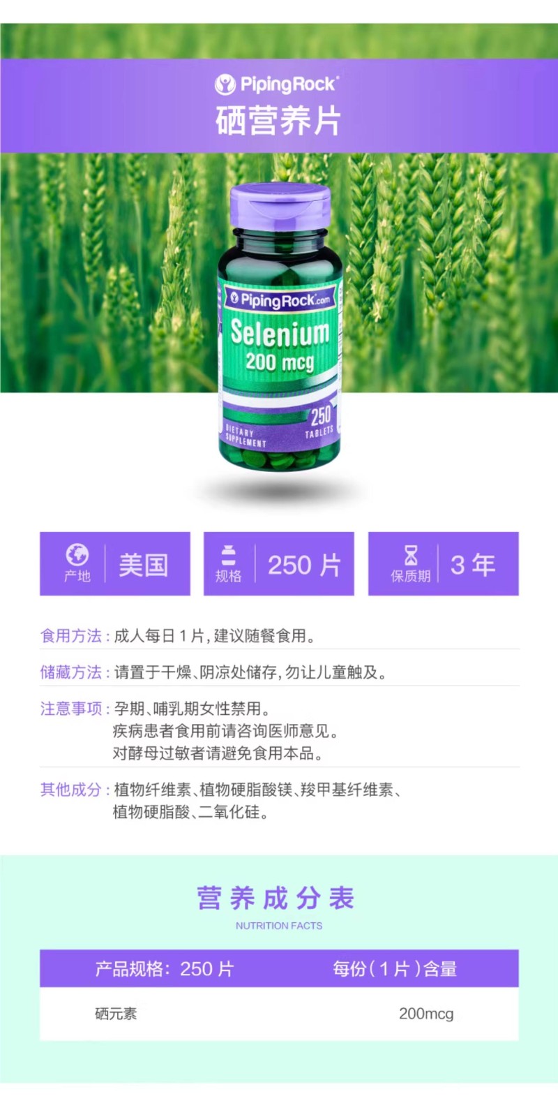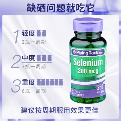 B250粒美国天然硒片补硒增强免疫力硒酵母硒元素非西麦双素麦芽硒