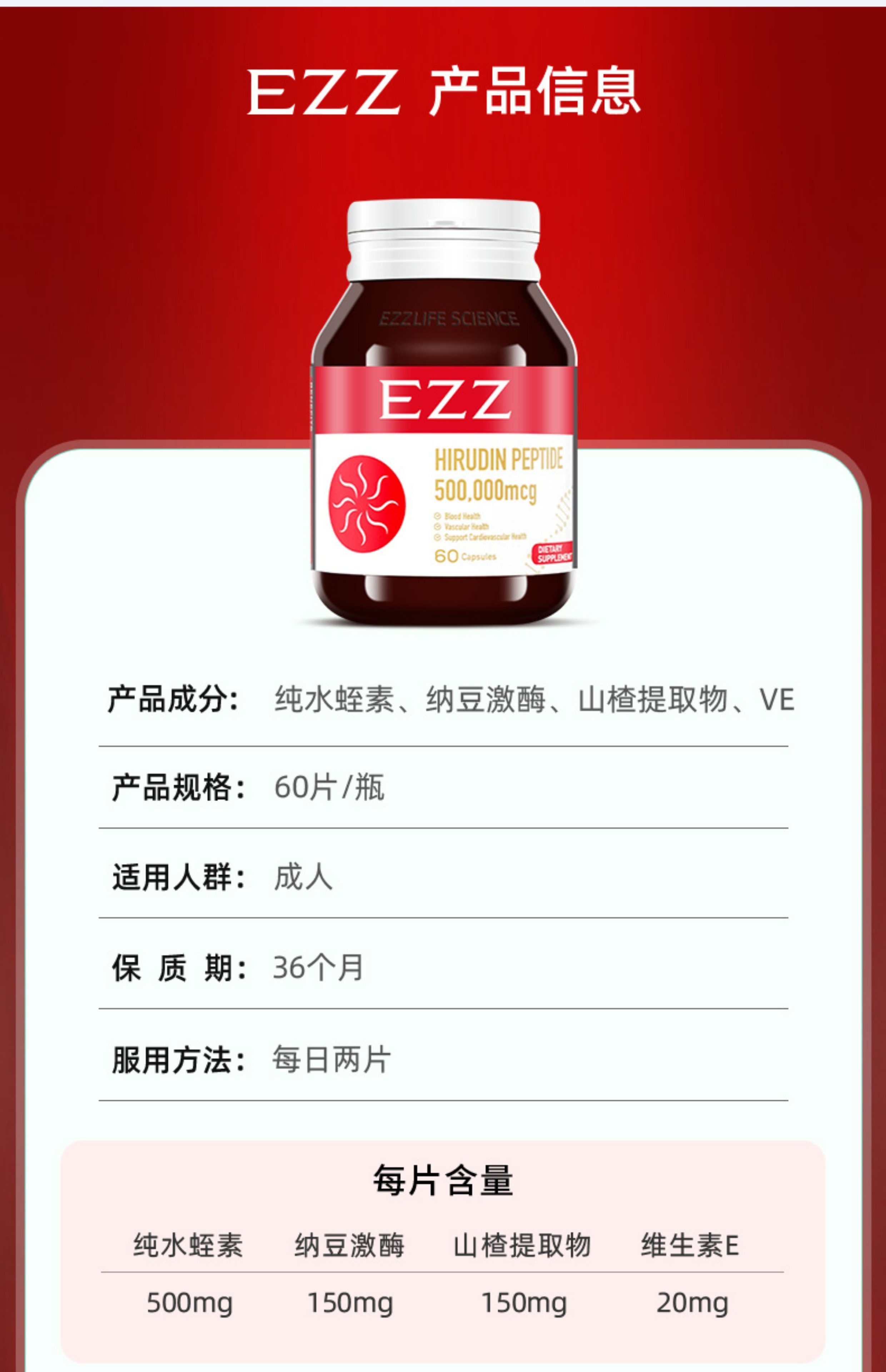 EZZ澳洲进口水蛭素纳豆激酶调理血管还原型中老年心脑血管保健品