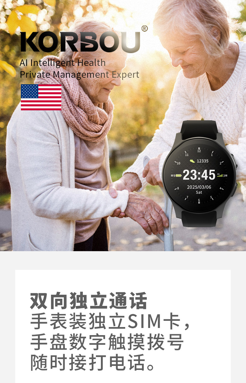 首页 > 智能设备 > 智能手表 > korbou 老年人智能手表远程监护定位电话