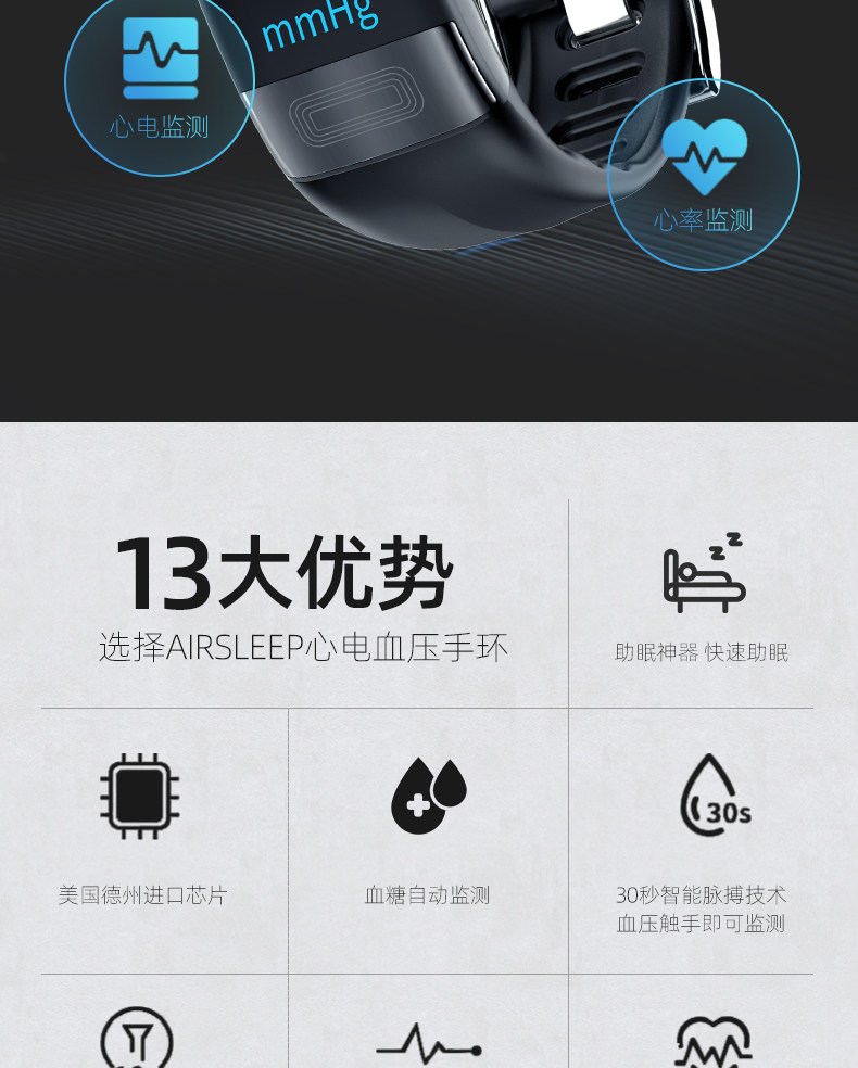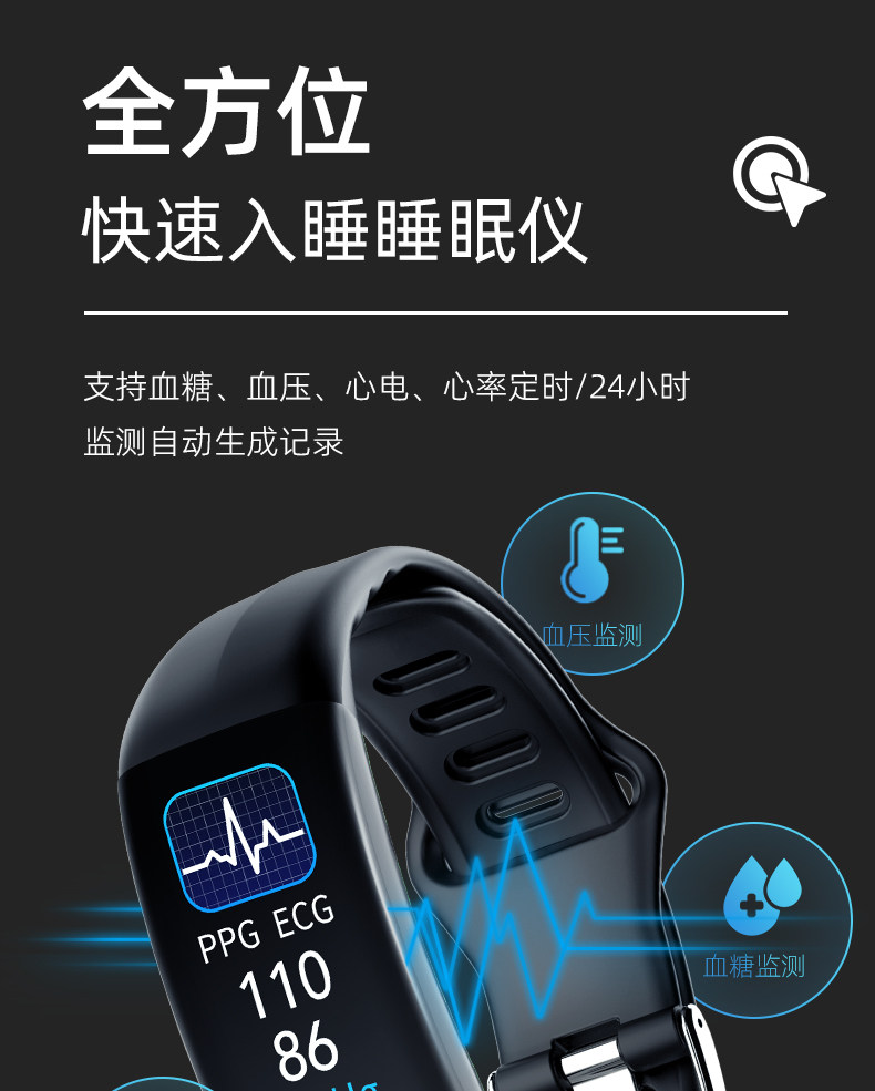 智能手环血糖血压心率监测仪24小时心脏心电健康睡眠监测智能手表