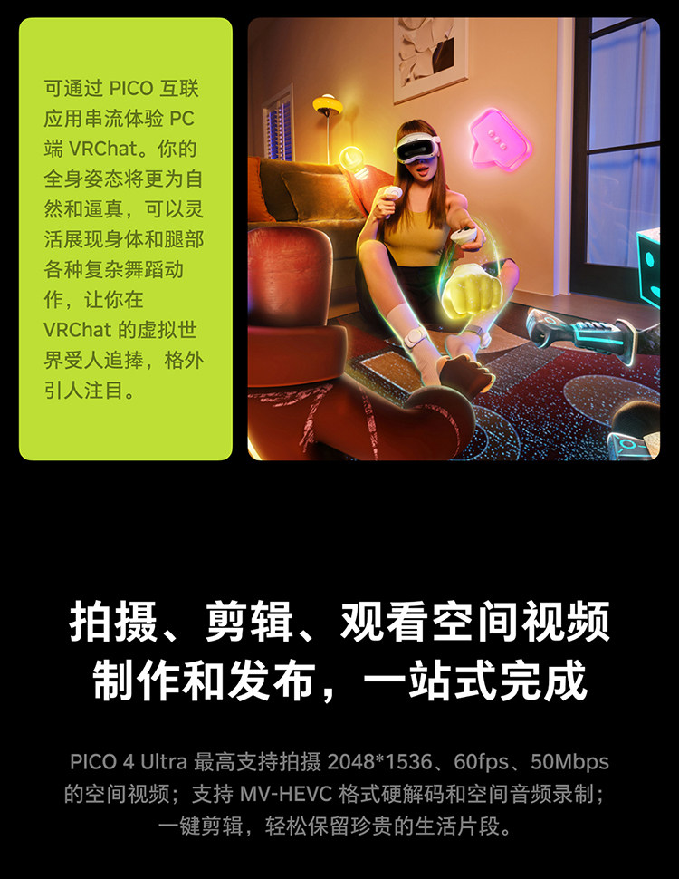 PICO 4 Ultra MR混合现实一体机VR智能3d眼镜头显XR设备串流Steam