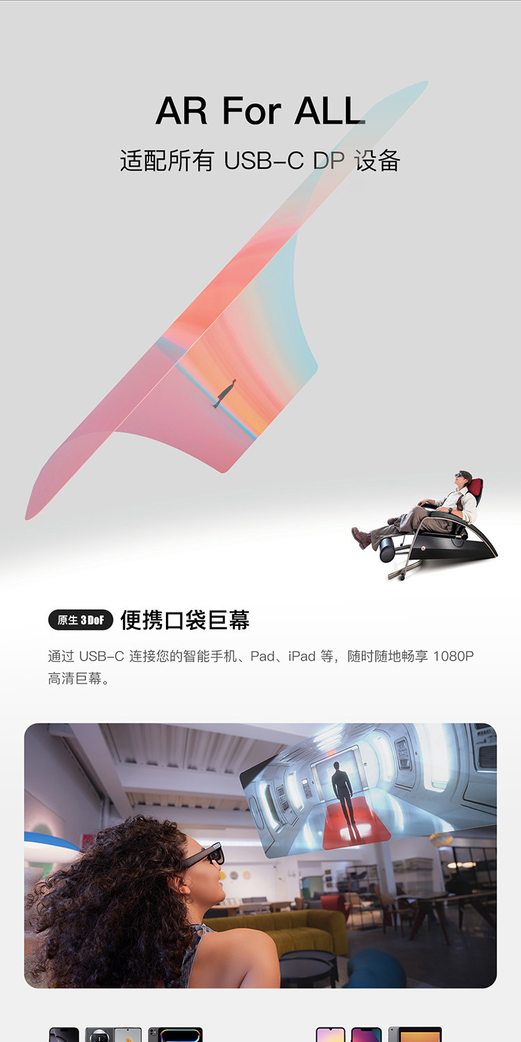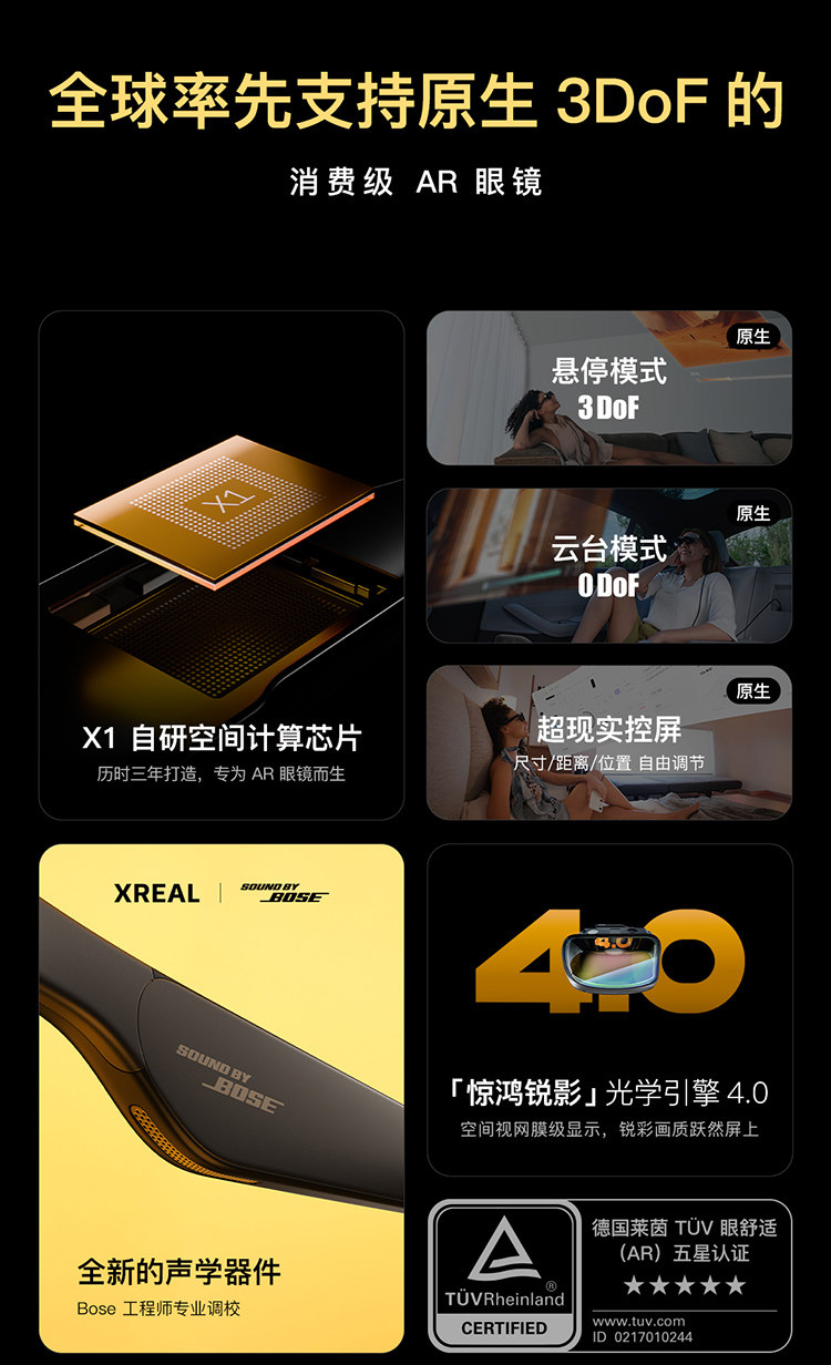 XREAL One AR智能眼镜 原生3DoF悬停 空中巨幕 自研空间计算X1芯片 直连苹果17系列 非VRAI眼镜