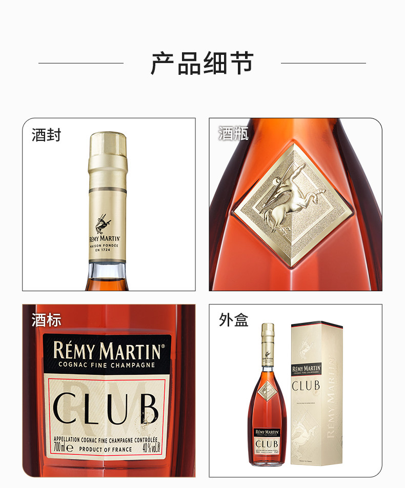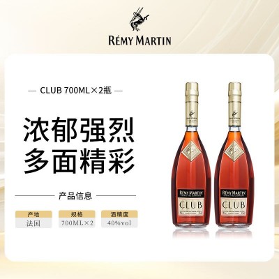 人头马CLUB法国优质香槟区干邑白兰地洋酒700ml*2瓶