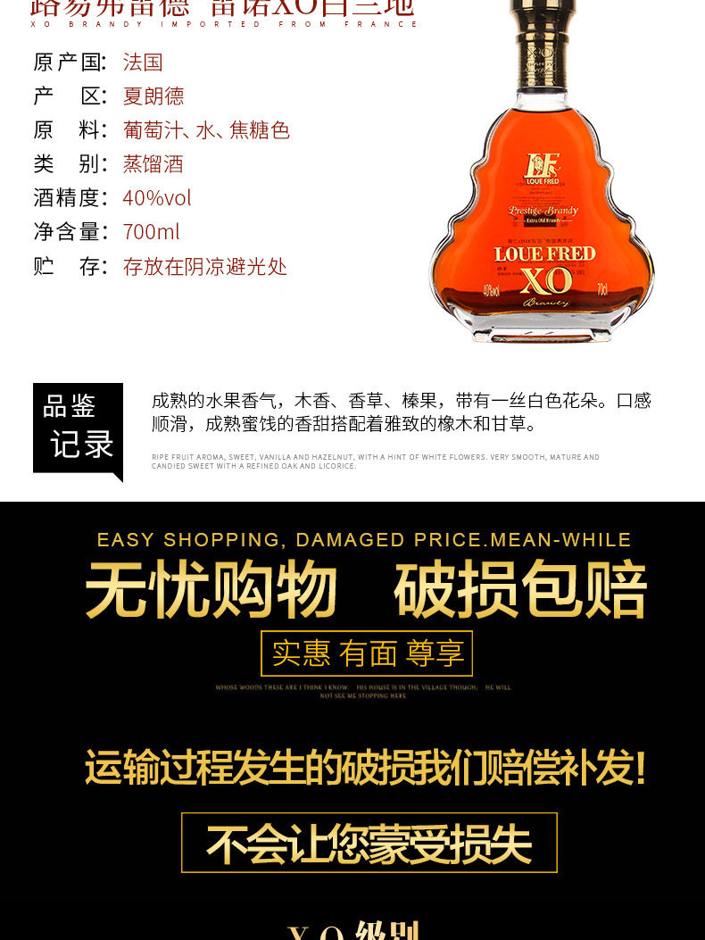 洋酒正品法国进口洋酒xo酒白兰地雷诺40度烈酒700ml礼盒装调酒礼