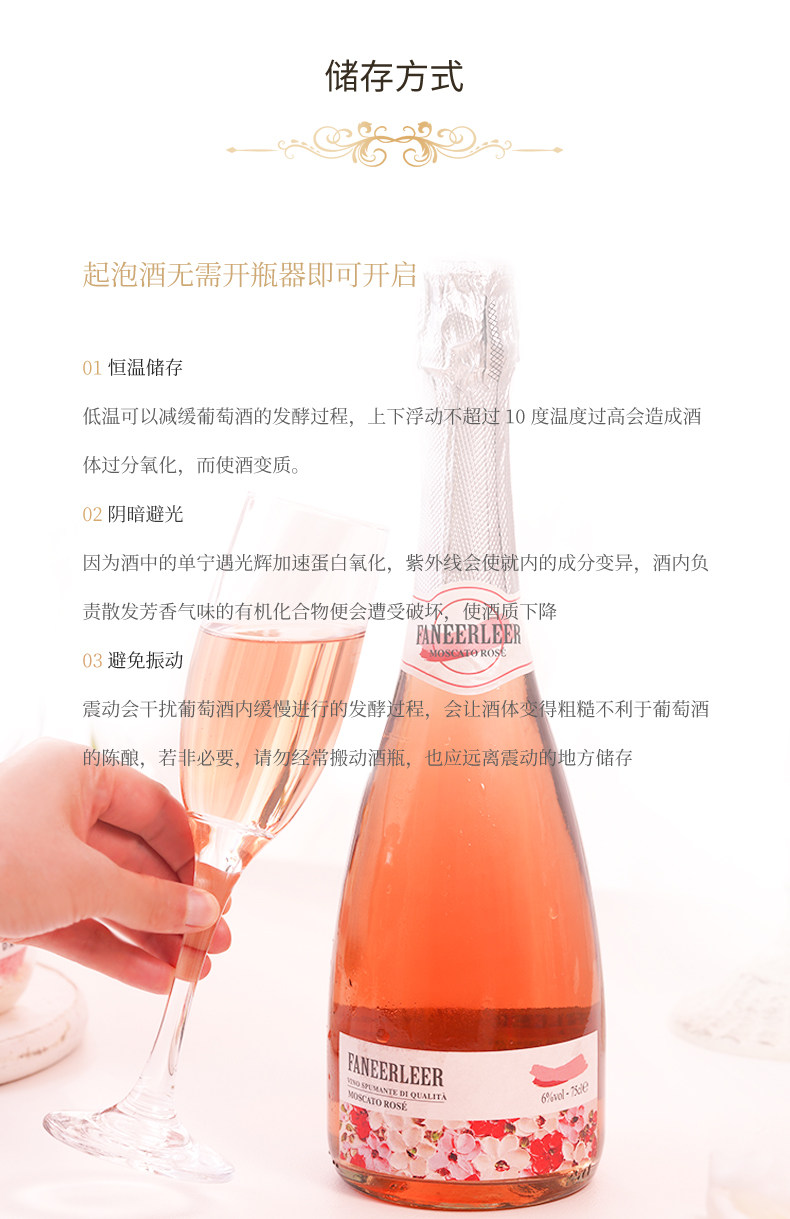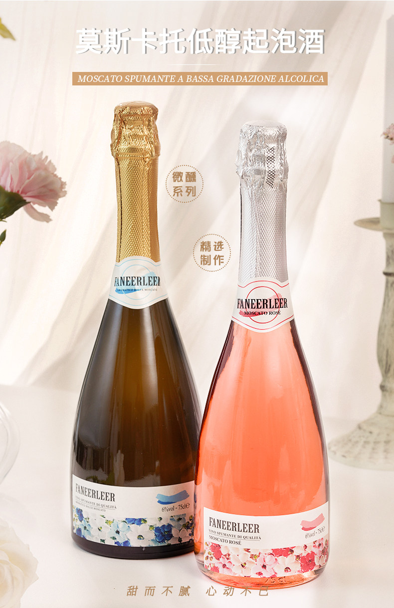 首页 > 中外名酒 > 果酒 > 莫斯卡托进口起泡酒甜白桃红葡萄酒气泡果酒送香槟杯
