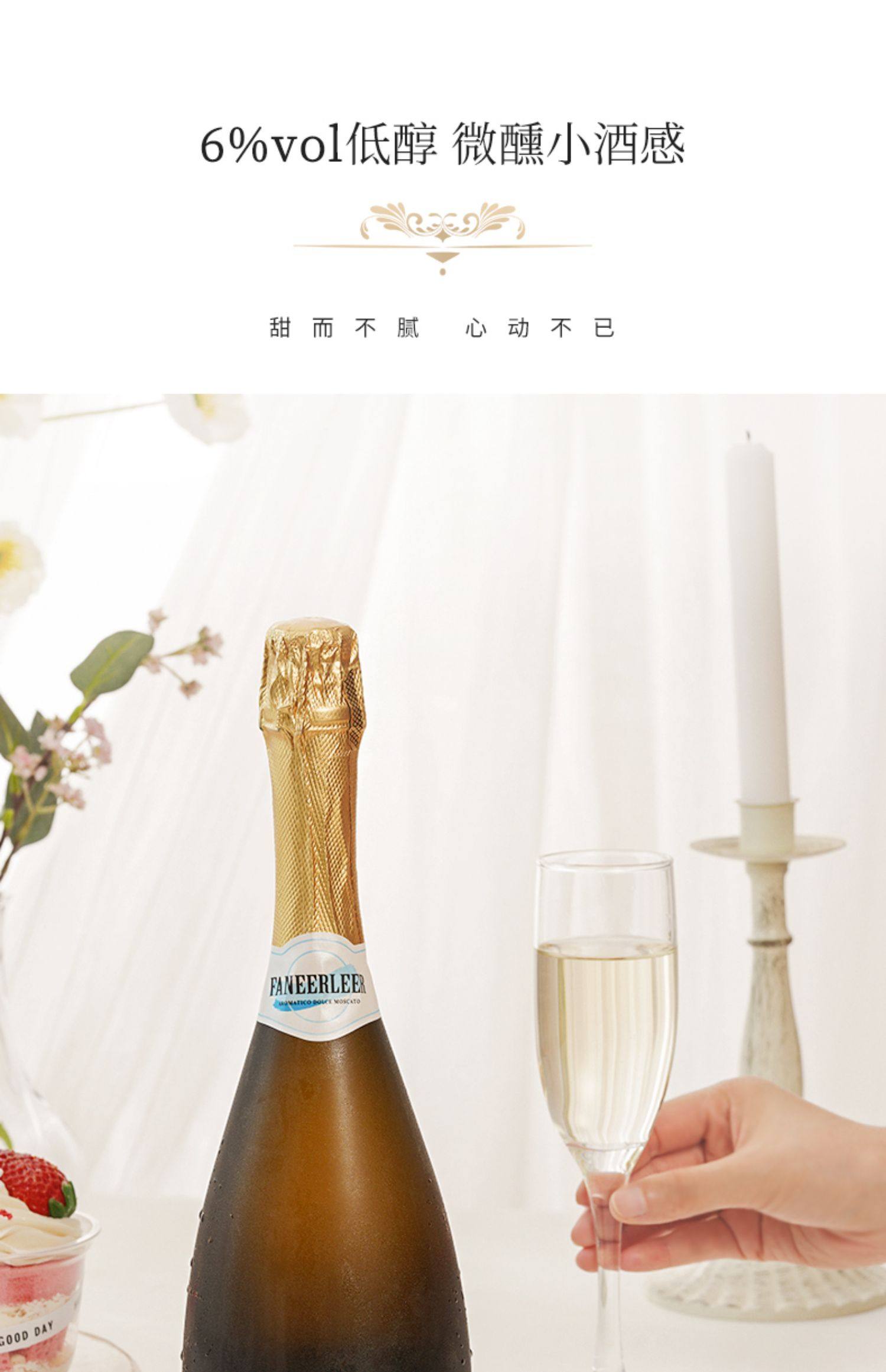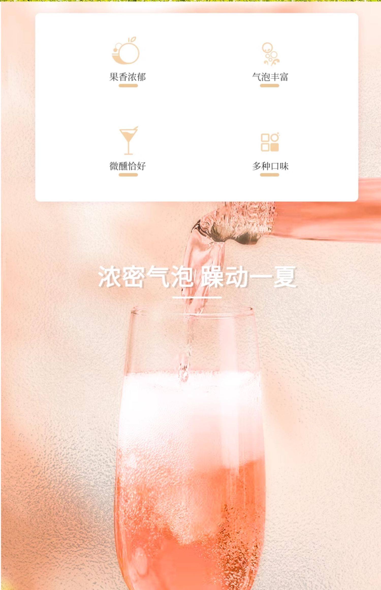 莫斯卡托进口起泡酒甜白桃红葡萄酒气泡果酒送香槟杯