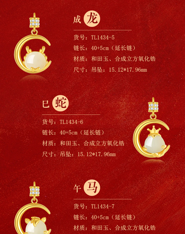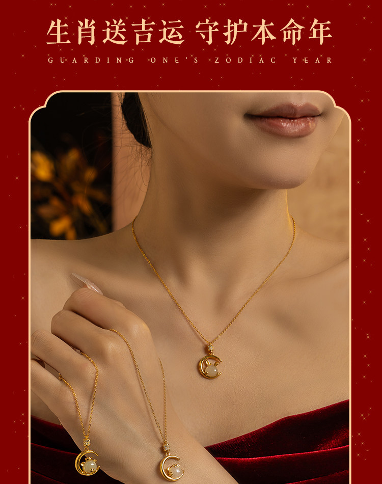 纯银十二生肖项链女款轻奢2026马年本命年玉吊坠生日元旦节礼物