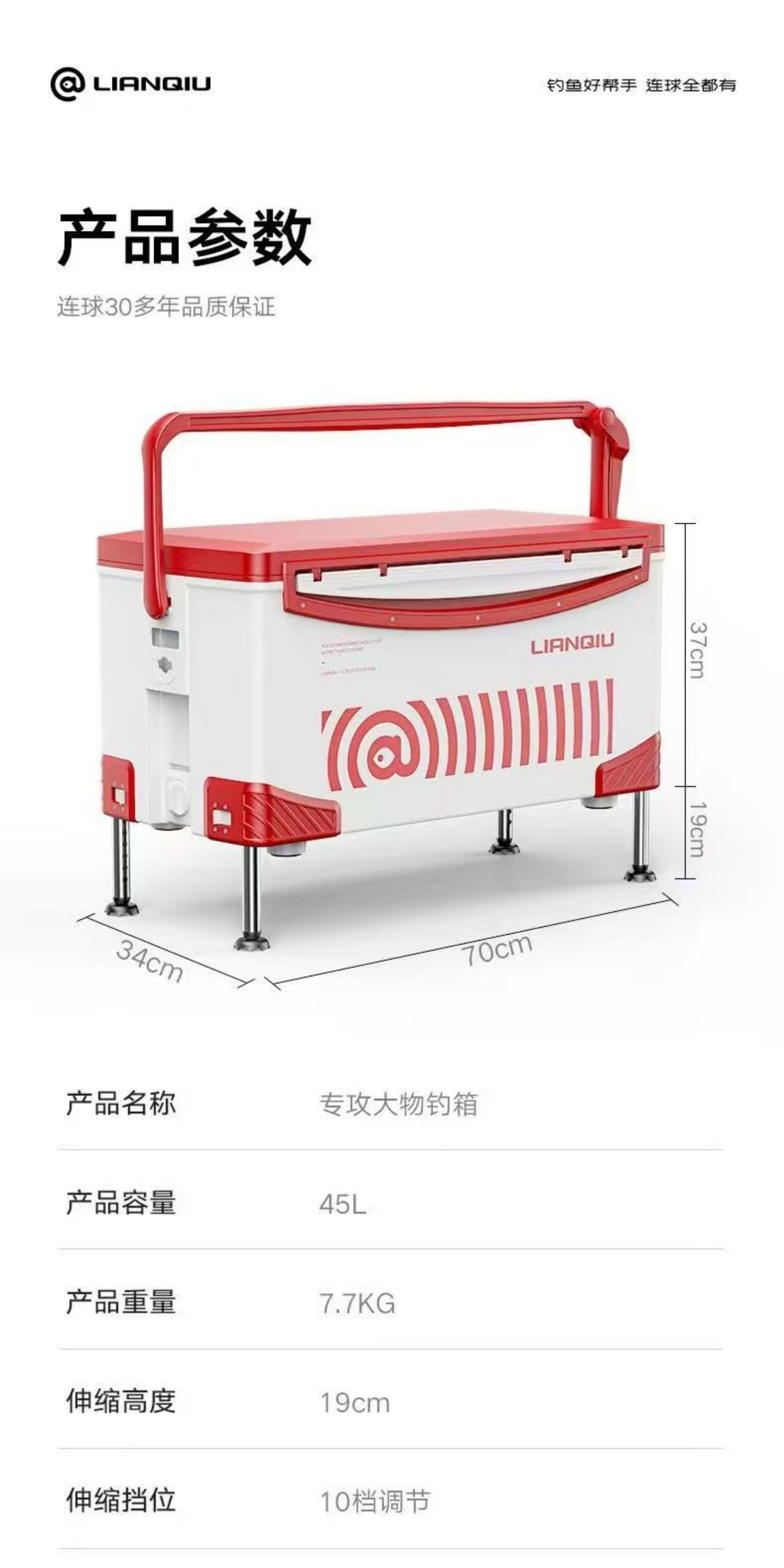 连球新款大物钓箱45升大容量台钓四脚升降款黑坑青鱼多功能拉杆箱